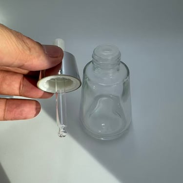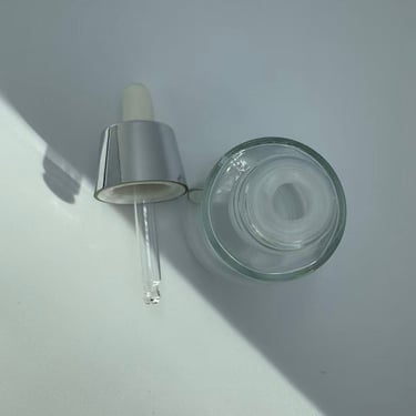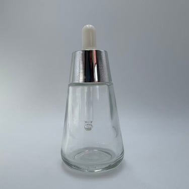 A bottle equipped with a dropper dispenser, mostly used for the dispensing and application of liquid beauty products such as serums, essential oils, and stock solutions